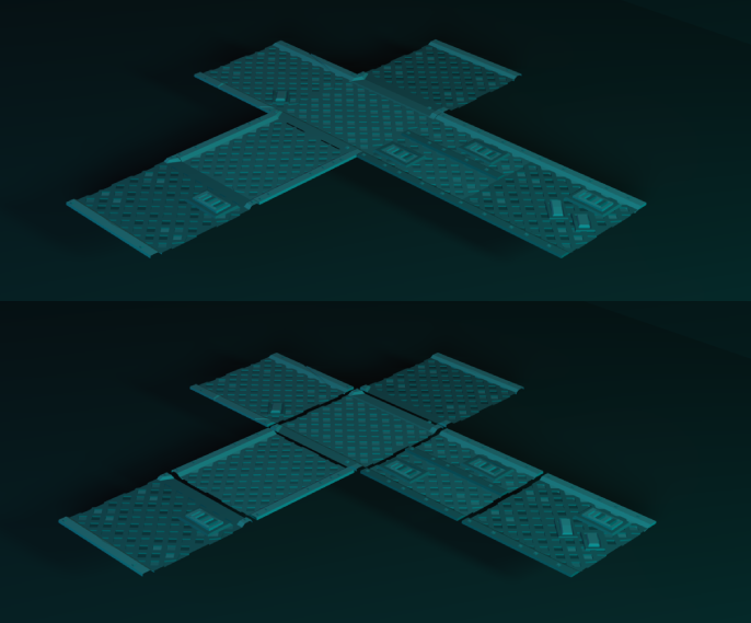 Everything is modular and stays on the same grid, so you can quickly build crosses, turns and long stretches, then just
