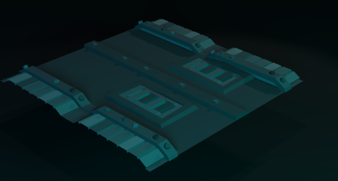 - Reinforced framed deck – floor with built-up edges, like the station’s spine with tech bands, meant for high-security zones.