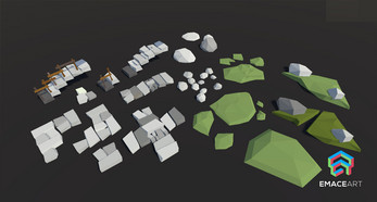 - Stone & Cobble: 11x Cobble walls, 13x Rock & Desk, 12x Sharp stone