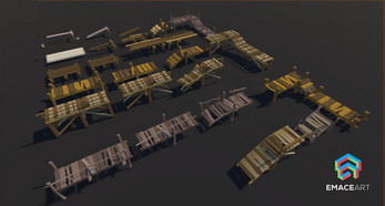 - Water & Paths: 8x River straights, 11x Road islands, 19x Road details (Rims, Sides, Bricks), 3x Stairs elements